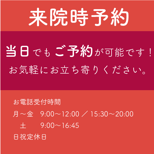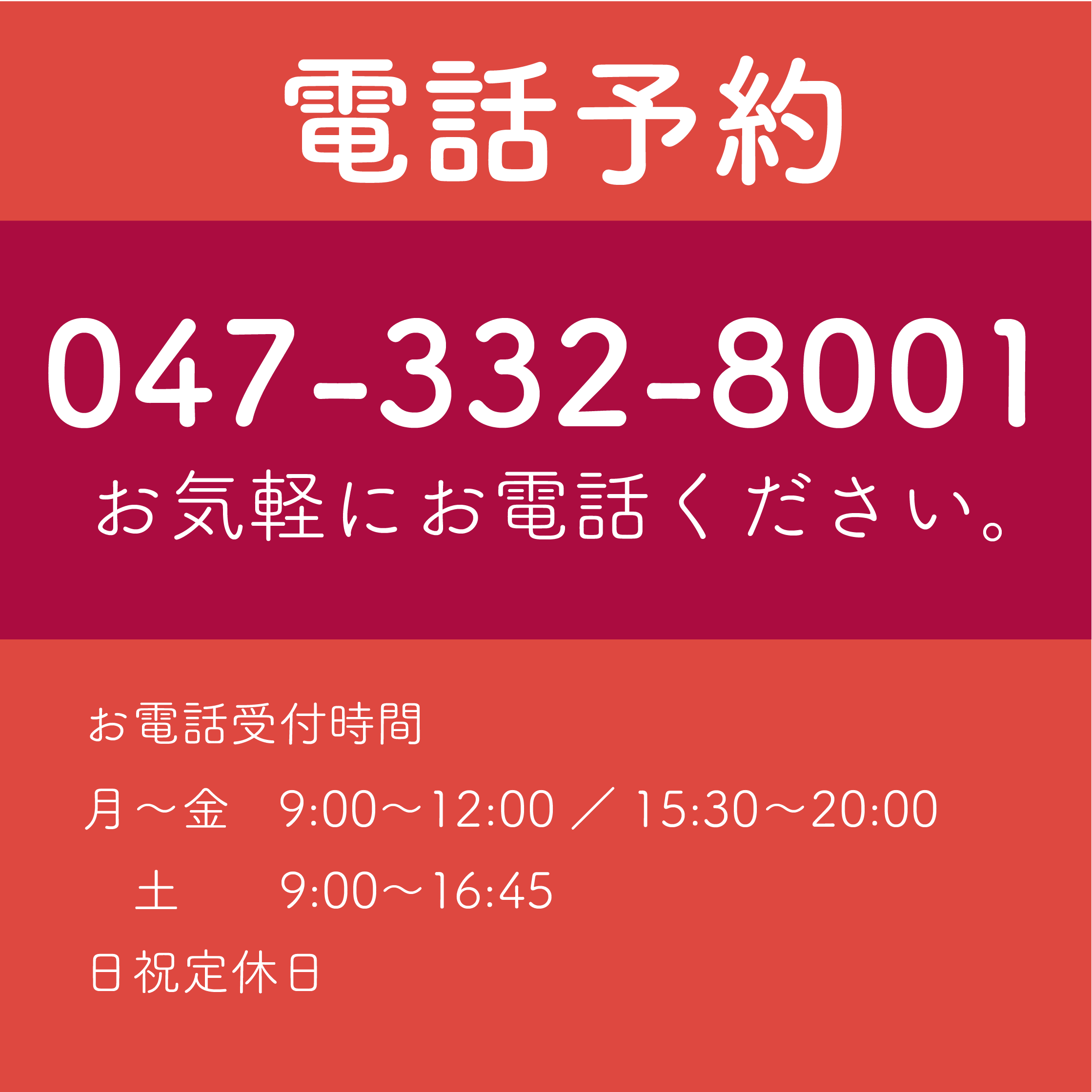 Webもしくは電話でご予約ください。<祝日営業のお知らせ>